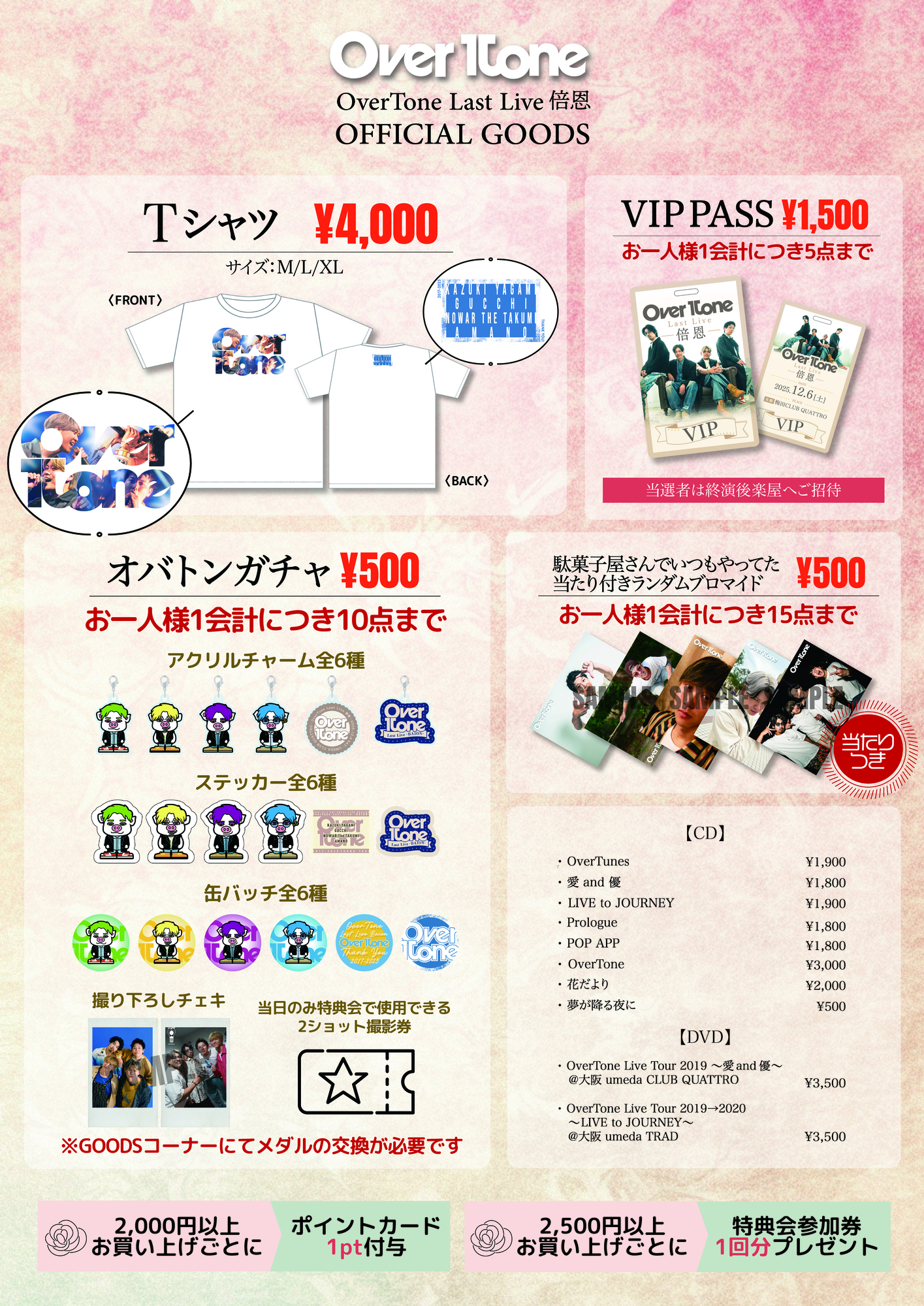 ※ OverToneオフィシャルグッズを2,500円ご購入ごとに、特典会参加券を1枚お渡しいたします。